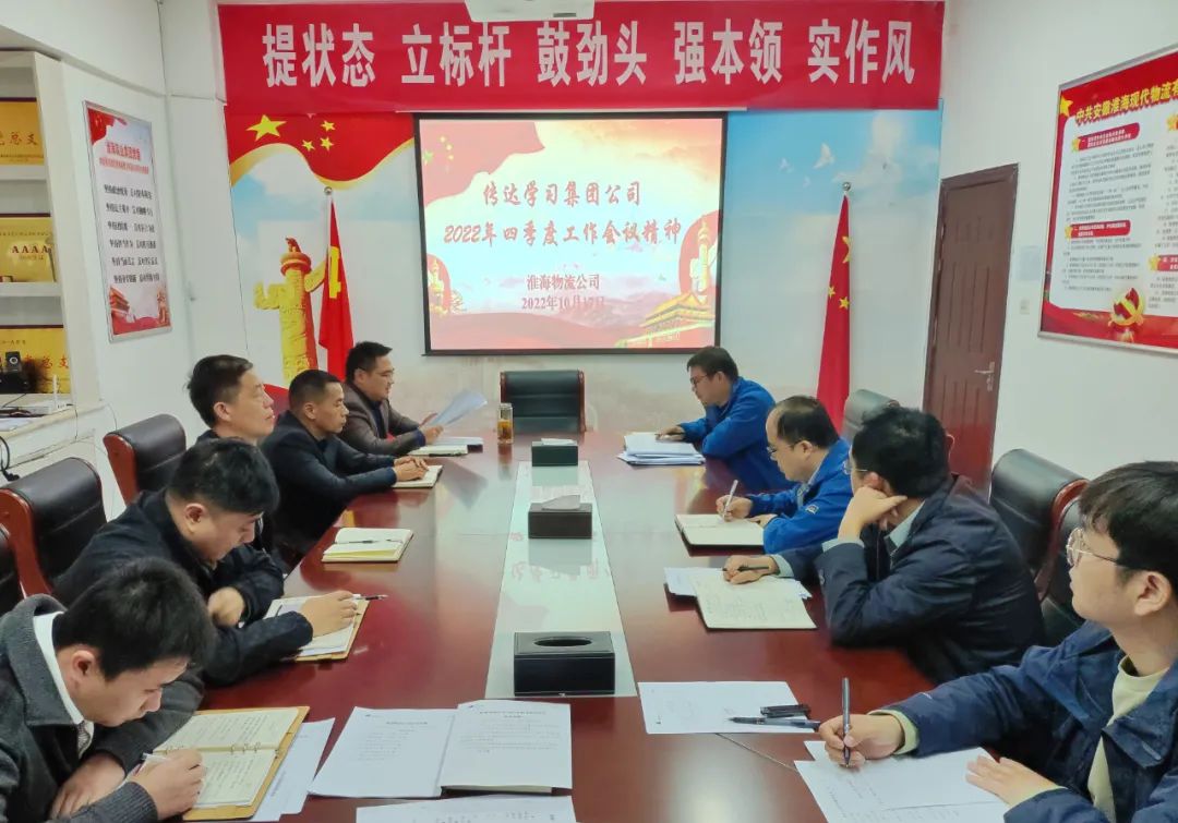 10月15日,集團公司召開四季度工作會議,強調要全面進入戰時狀態、拿出實戰舉措,精準發力、持續用力,奮戰四季度、全力抓沖刺,堅決打贏各項工作收官戰。各單位迅速行動、及時傳達會議精神,謀劃落實舉措。淮海物流在專題會上強調,要迅速掀起“高舉旗幟,全力沖刺,力爭各項工作取得最好成果”的工作氛圍,切實將思想和行動統一到“一沖、一改、四穩”工作要求上來,在嚴守經營風險的前提下,以做實做優做大貿易業務、提升營...