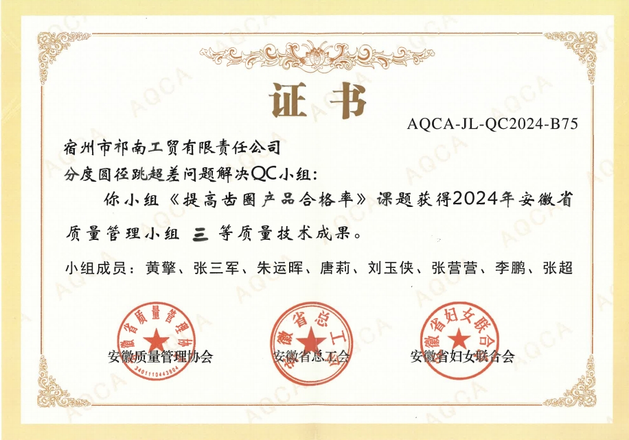 近日,2024年安徽省質量管理小組活動交流會暨成果發表賽圓滿落幕。淮海實業集團所屬祁南公司《提高齒圈產品合格率》,在全省近600個QC成果中脫穎而出,獲得大賽三等獎。 此次QC成果發布會課題成果內容包括電力、煙草、通信、化工、鐵路、鋼鐵、汽車、家電、食品、醫藥等10多個領域,共計110多家企業1200余人參賽。 多年來,集團公司高度重視質量管理,大力開展QC小組活動,充分發揮骨干人才引領作用,激發廣大職工參與質量...