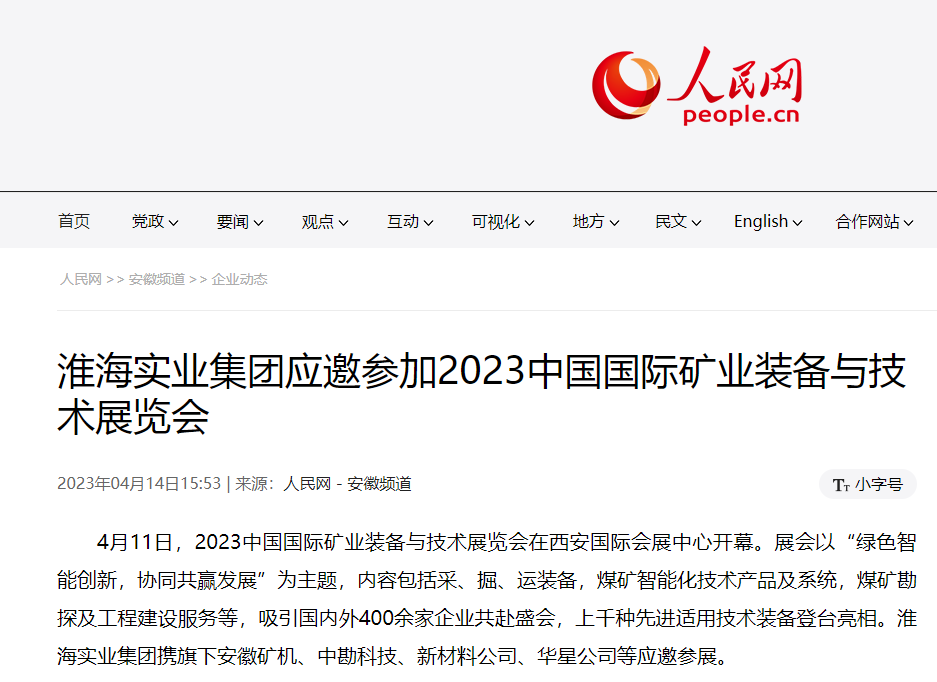 淮海實業集團應邀參加2023中國國際礦業裝備與技術展覽會