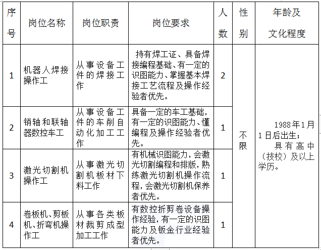 隨著公司業(yè)務(wù)的不斷拓展,為了將公司主導(dǎo)產(chǎn)業(yè)做大做強(qiáng),需招聘技能人員,現(xiàn)將有關(guān)事項(xiàng)公告如下: