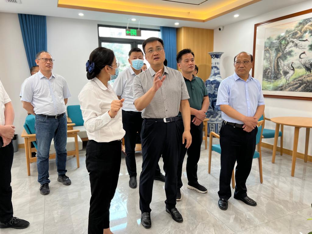 7月29日,淮北市政府黨組成員姚珂、市政協(xié)副主席孫興學到淮海養(yǎng)老黎苑社區(qū)綜合為老服務中心和淮海康養(yǎng)中心調(diào)研。集團公司總經(jīng)理助理戴禮越陪同。