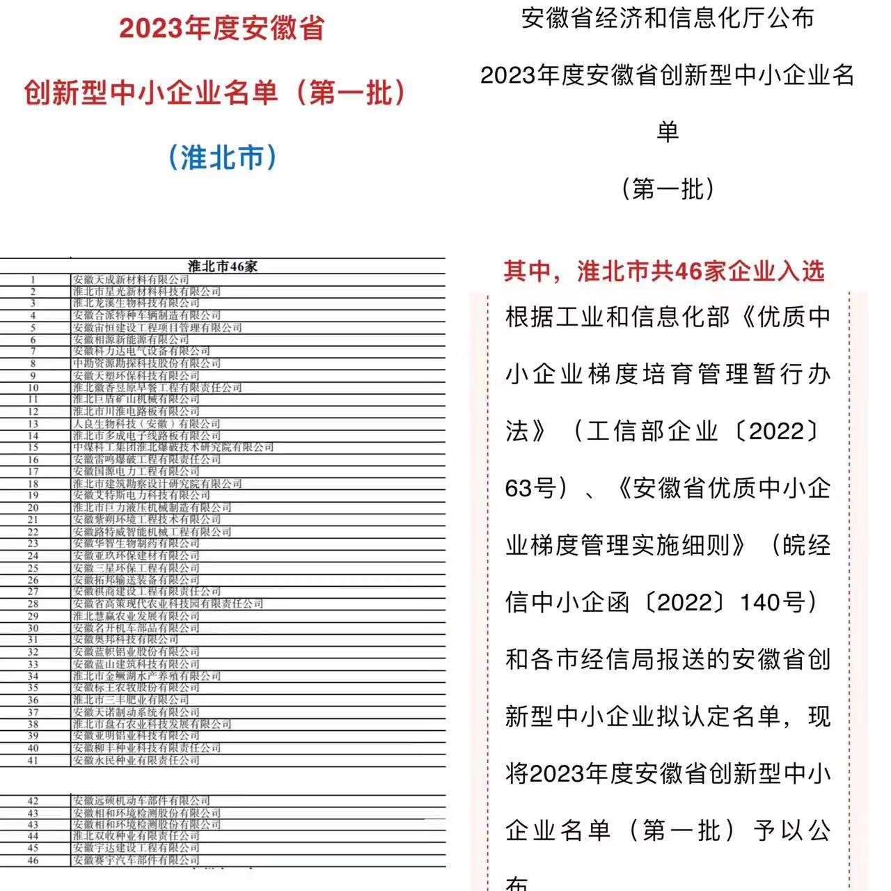 近日,安徽省經(jīng)信廳公布了2023年度安徽省創(chuàng)新型中小企業(yè)名單(第一批),中勘科技名列其中。