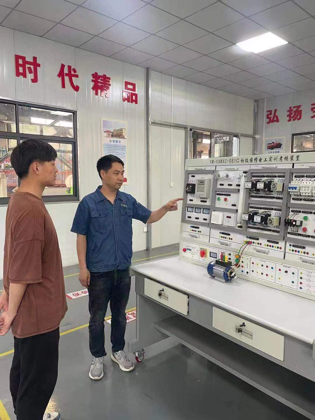 走進(jìn)華星公司勞模創(chuàng)新工作室,最先映入眼簾的即是擺在工作室中央的培訓(xùn)裝置。“這是我們引進(jìn)的YM-YXWXC-081C電工實(shí)訓(xùn)考核裝置,主要用于電力操作實(shí)習(xí),它是教會(huì)我們實(shí)操演練的機(jī)器‘老師’”集團(tuán)公司勞動(dòng)模范、華星公司洗選設(shè)備制造廠電工班班長(zhǎng)王創(chuàng)風(fēng)趣地說(shuō)道。
