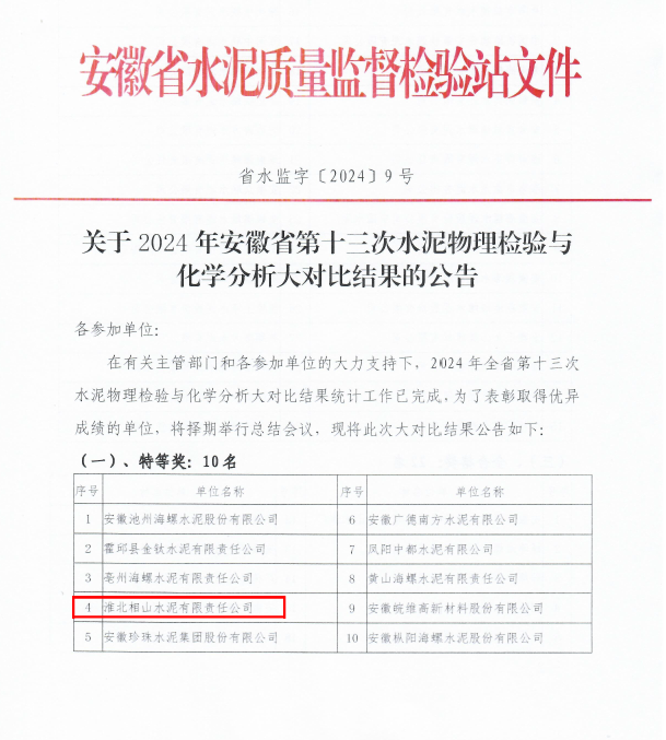 工欲善其事,必先利其器。近日,筆者從相山水泥了解到,該公司斬獲安徽省第十三次物理檢驗與化學分析大對比“特等獎”,躋身省水泥質量監督檢驗“第一方陣”。