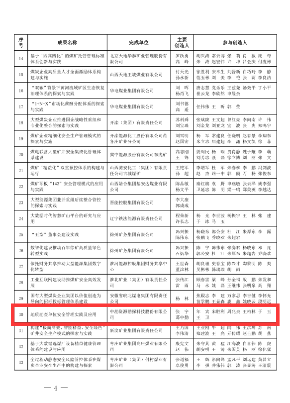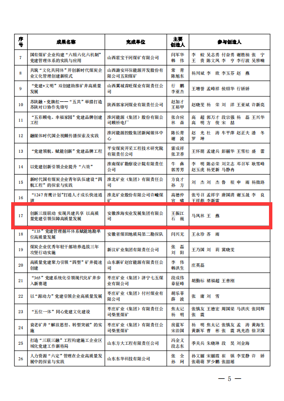 日前,中國煤炭工業協會、中國煤炭職工思想政治工作研究會聯合下文,發布和推廣2023年全國煤炭企業管理(黨建類)現代化創新成果,淮海實業集團兩項成果獲獎。分別是中勘科技“地質勘察單位安全管理實踐及應用”項目榮獲二等獎;集團公司黨委“創新三級聯動 實現共建共享 以高質量黨建引領保障高質量發展”項目榮獲三等獎。