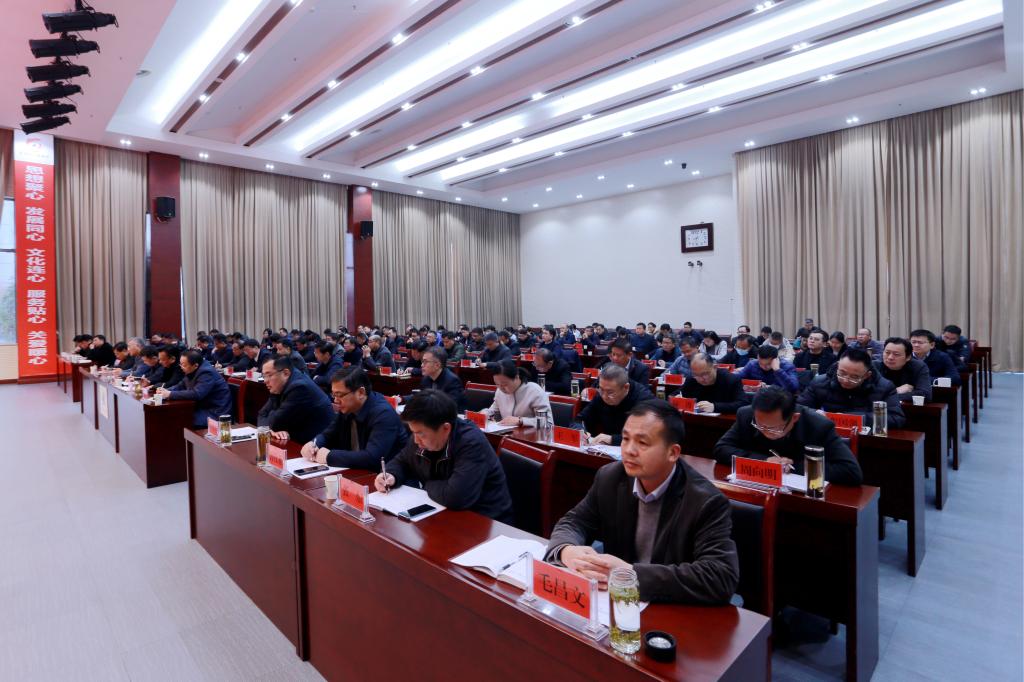 集團公司黨委書記、董事長王振江作題為《聚力篤行,和合共贏,扎實開展“五心兩來”群眾性主題宣傳教育,助力集團積勢蓄能》動員講話。他指出,要深刻認識開展“五心兩來”群眾性主題宣傳教育,是實現黨對國有企業領導的重要途徑、是實現集團公司“五重”目標的現實需要、是增強干部職工凝聚力戰斗力的有效舉措,對于加強和改進思想政治工作,最大程度凝聚干群共識、匯聚行動合力的重要意義。錨定“強化引領凝聚人心,彰顯新氣象;深查細照正視差距,迸發新活力;調研剖析明確方向,展現新實力;共建共享推動發展,創造新價值;以文化人振奮精神,集聚新動能,塑造集團良好形象”具體目標,以“思想聚心、發展同心、文化連心、服務貼心、關愛暖心”系列活動為載體,深入開展“收入從哪里來、效益從哪里來”解放思想大討論,以“五心”促“兩來”,前后貫通、一體推進,切實把思想政治工作融入生產經營和黨的建設全過程、各方面,推進任務有效落實,涵養良好政治生態,推動集團高質量發展。