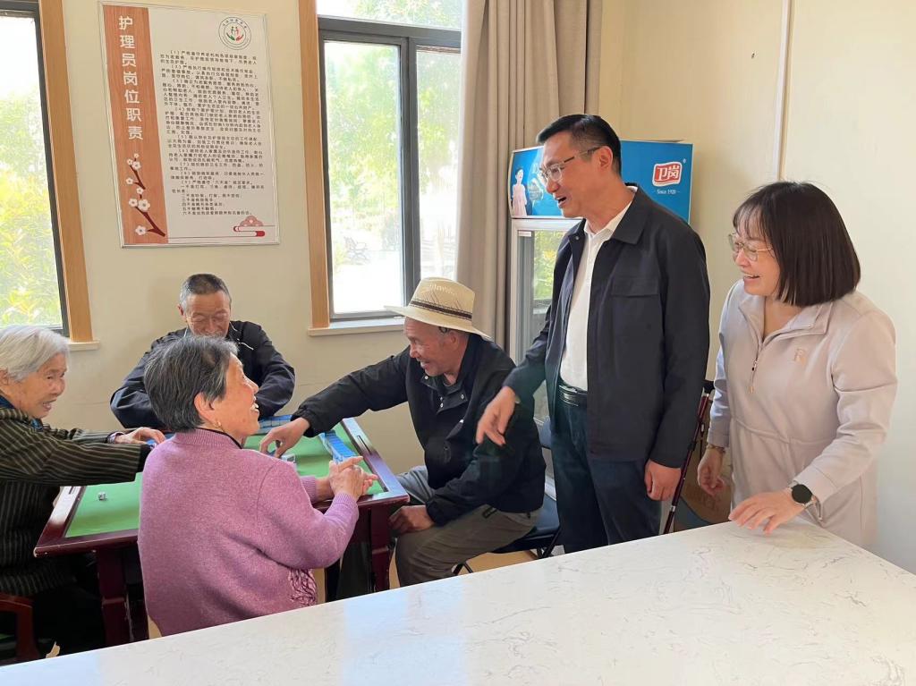 在淮海健康養(yǎng)老服務(wù)中心、愛暉頤養(yǎng)院,王振江實(shí)地察看長者生活區(qū)、適老化功能區(qū)、居家養(yǎng)老服務(wù)平臺(tái)、老年食堂等,詳細(xì)了解機(jī)構(gòu)運(yùn)營模式、服務(wù)內(nèi)容、消防安全等情況,關(guān)切詢問在院老人身體情況和生活狀況,并送去節(jié)日問候和祝福。他指出,要夯實(shí)養(yǎng)老服務(wù)基礎(chǔ),加強(qiáng)人員培訓(xùn)、提升運(yùn)營管理,提高服務(wù)品質(zhì)和內(nèi)涵,實(shí)現(xiàn)提質(zhì)增效;要積極探索新的營業(yè)模式,運(yùn)用智能化和數(shù)字化手段,打造“多元化”服務(wù)格局,滿足老年人個(gè)性化、多樣化需求;要加大宣傳力度,采取“線上+線下”相結(jié)合,擴(kuò)大“淮海康養(yǎng)”知名度和影響力,提升機(jī)構(gòu)入住率。
